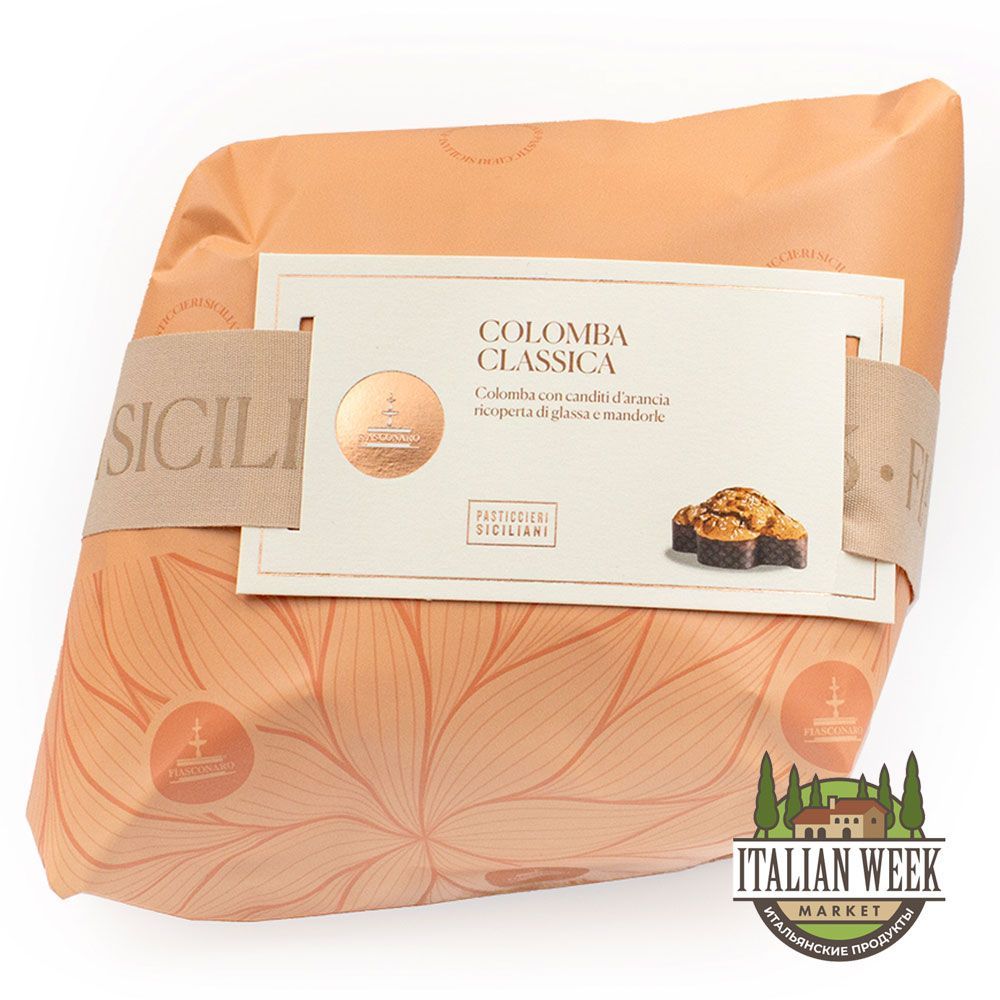 Коломба ручной работы со свежими апельсиновыми цукатами, покрытая глазурью и миндалем Авола.