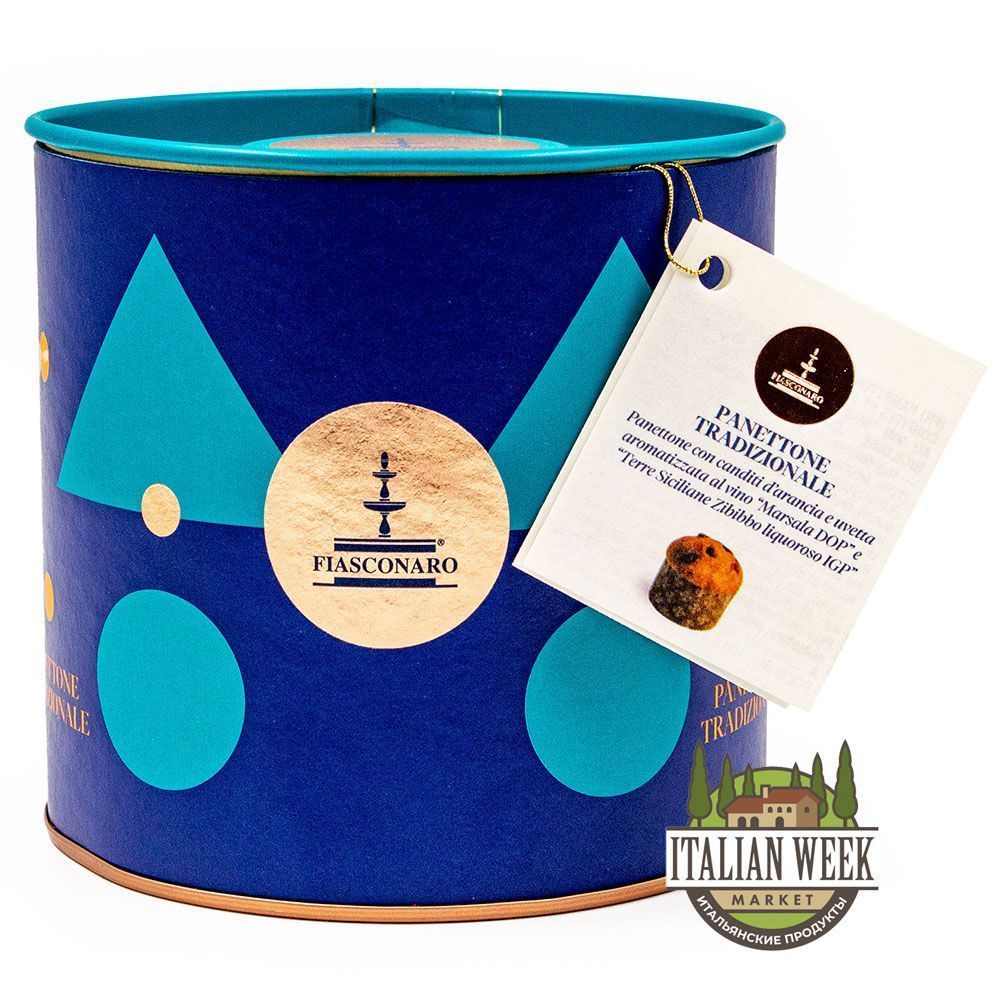 Традиционный панеттоне из знаменитого теста Fiasconaro со свежими апельсиновыми цукатами и изюмом, ароматизированными вином Марсала DOP и Ликером Терре Сичилиане Зибиббо IGP, упакованный в элегантную ткань.