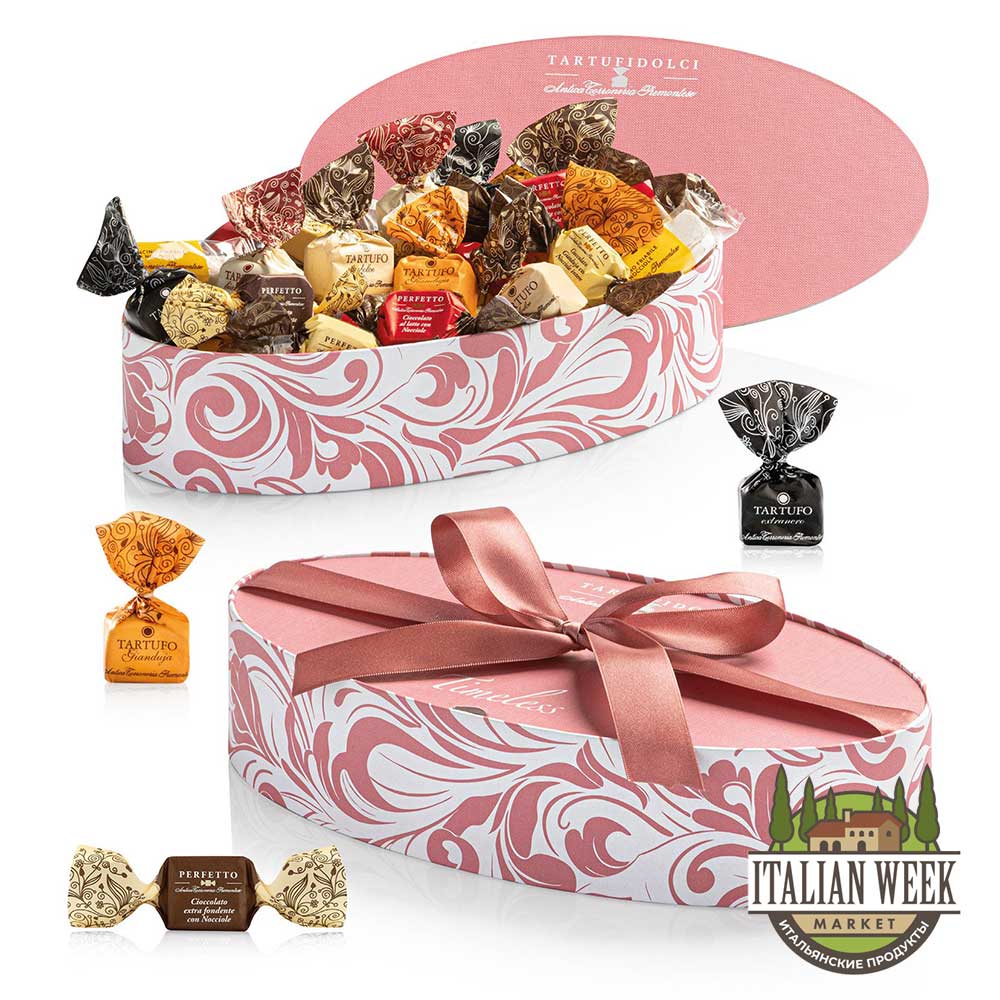 Внутри вас ждёт изысканное сенсорное путешествие по всей нашей коллекции изысканных сладостей. От неповторимых Торрончини - хрустящих и нежных, созданных по рецепту и методу производства, передающимся из поколения в поколение, чтобы достичь великолепия из немногих, но превосходных сырых материалов. Затем к ценным Трюфелям, представленным в четырёх знаковых вкусах, которые положили начало и определили историю нашего бренда: классический сладкий L’Originale, белый сладкий, экстра-тёмный и Джандуйя. И наконец, к утончённым Перфетти во вкусах Экстра-горький, Джандуджа и Молочный с Карамелизированным Фундуком.